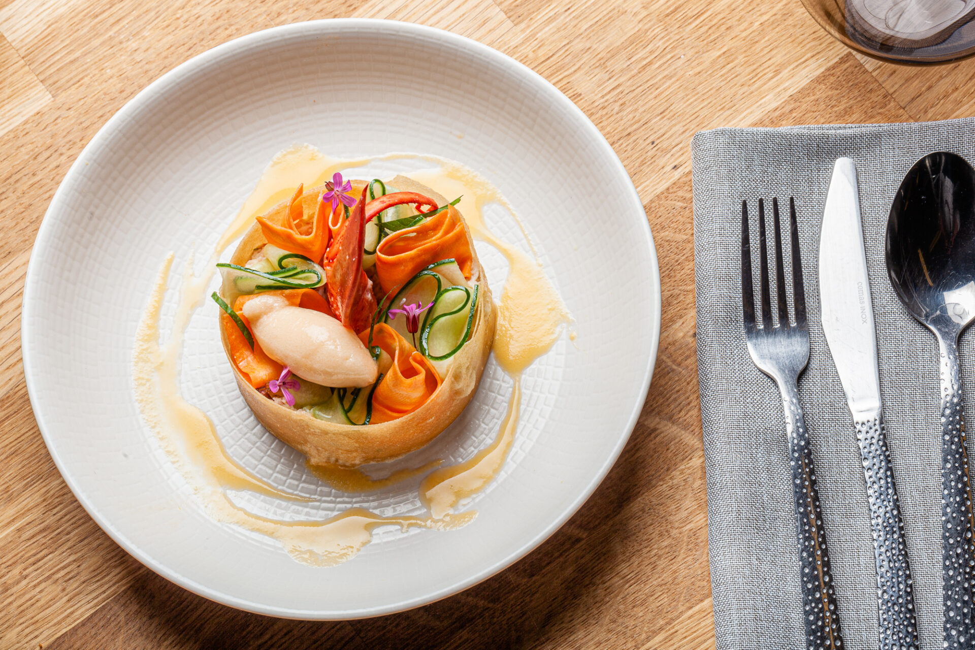 On vient au Grand Pré pour vivre une parenthèse gourmande en pleine nature, dans une ancienne ferme joliment restaurée au bord de la Hantes, où le cadre rustique et le jardin apportent une vraie sensation de calme. La cuisine bistronomique moderne du chef Loïc Claes met en avant un terroir vibrant : légumes du potager maison, circuits d’approvisionnement ultra courts et viandes locales composent des assiettes précises et contemporaines, qui restent lisibles et généreuses. Lunch ou menus en plusieurs services permettent de découvrir sa cuisine au fil des saisons, avec également des propositions végétariennes et véganes. Recommandé par de nombreuses récompenses, Le Grand Pré s’impose comme une adresse chaleureuse pour celles et ceux qui recherchent une cuisine sincère, très ancrée dans sa terre.